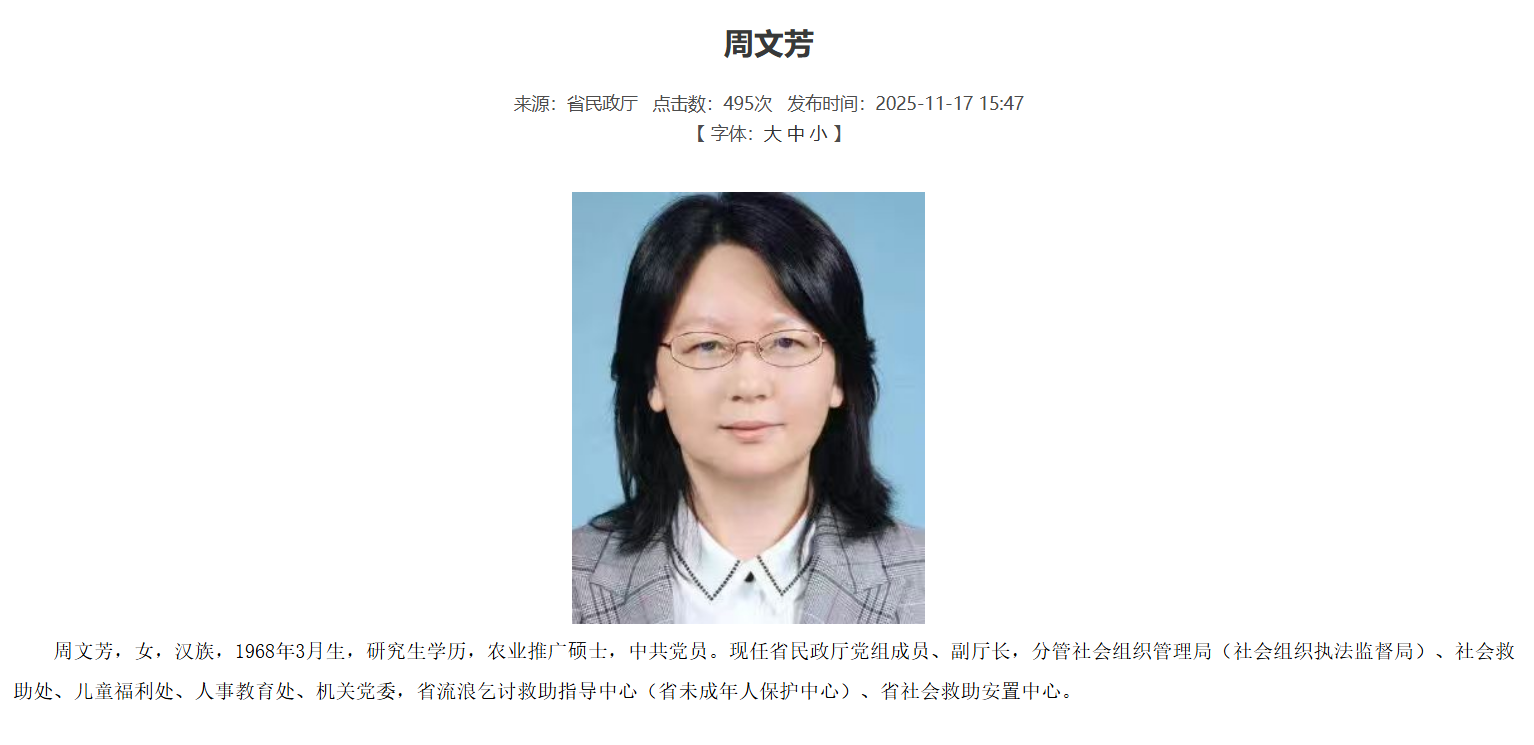 🐬2025-11-22 09:08 「百科/秒懂百科」【 周文芳任安徽省民政厅党组成员、副厅长据安徽省民政厅网站“机构领导”一栏近日更新后显示,周文芳已任安徽省民政厅党组成员、副厅长。】🐙支持:32/64bi🥌系统类型:(官方)官方网站IOS/Android通用版/手机APP(2024APP下载)《周文芳任安徽省民政厅党组成员、副厅长据安徽省民政厅网站“机构领导”一栏近日更新后显示,周文芳已任安徽省民政厅党组成员、副厅长。》